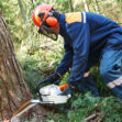 trimming or removing trees. Our workers wear appropriate safety gear,