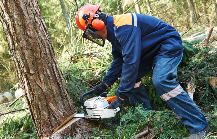 trimming or removing trees.  Our workers wear appropriate safety gear,